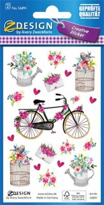 Matrica, papír, 3 ív, 76x120 mm, AVERY ZWECKFORM, "Z-Design No.56891", virágok