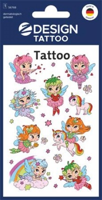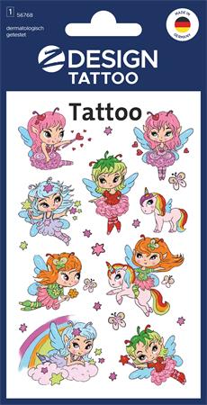 Matrica, tetoválás, 1 ív, 76x120 mm, AVERY ZWECKFORM, "Z-Design No.56768", tündérlányok és unikornisok