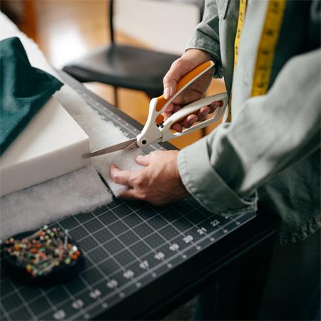 A Fiskars Easy Action szövetvágó olló kifejezetten textíliák, például szövetek és anyagok vágására lett tervezve