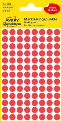 Etikett, 8 mm, kör, AVERY ZWECKFORM, piros, 416 etikett/csomag