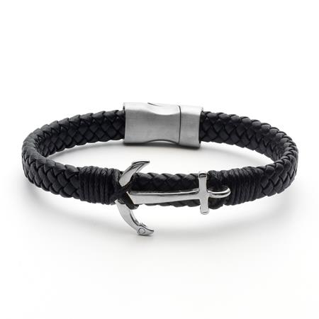 KezdőlapÜzemeltetésAjándékok és party kellékekÉkszerekKarkötő, fekete fonott bőr, mágneszárral, ezüst színű horgonnyal, 22,5cm, ART CRYSTELLA®